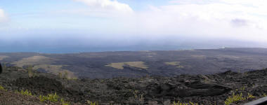 さて、現在(2006年)は、ここから流れている溶岩や海に落ちる溶岩を、歩いて見に行くことができます(下記の「※」参照)。 この辺りの溶岩はパホエホエ(滑らかな溶岩)ですが、パホエホエと言っても、ゴツゴツしていて歩きにくく、油断をすると転んでしまいます。溶岩の上に付いている、黄色い反射板を目安に歩きましょう。